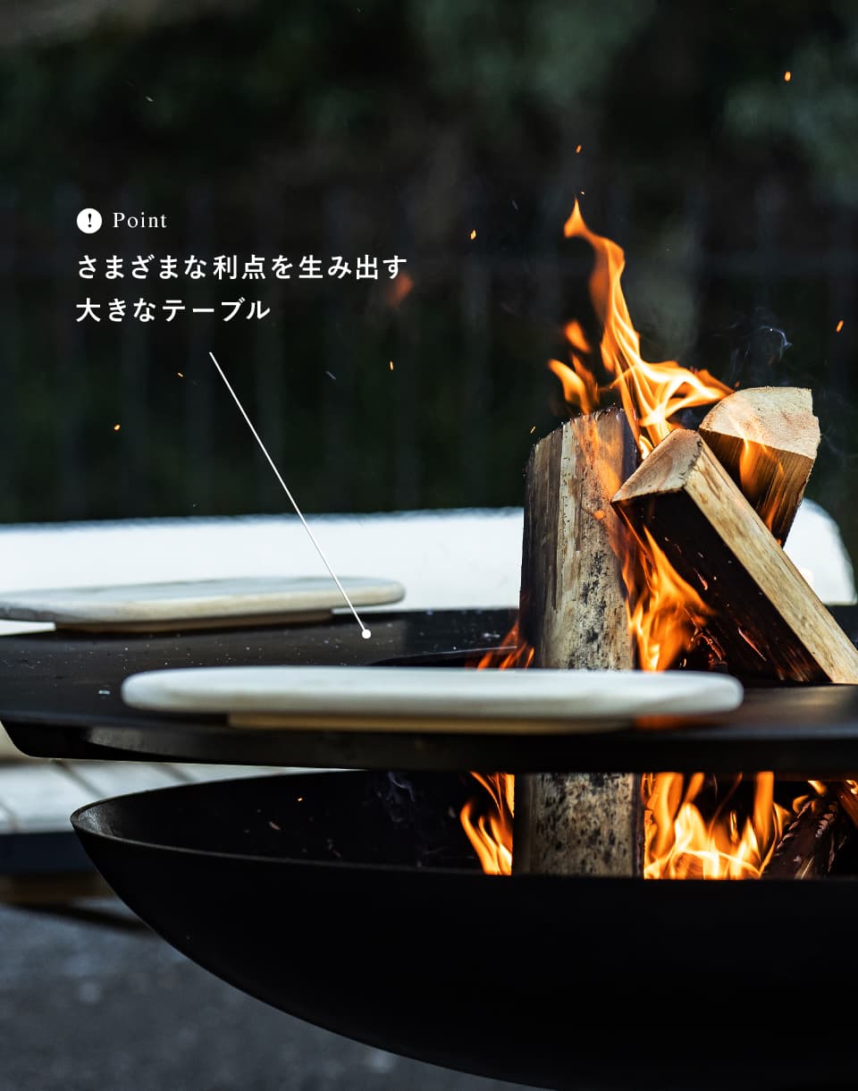 団欒シーンをつくり出す、新しい焚き火台です。